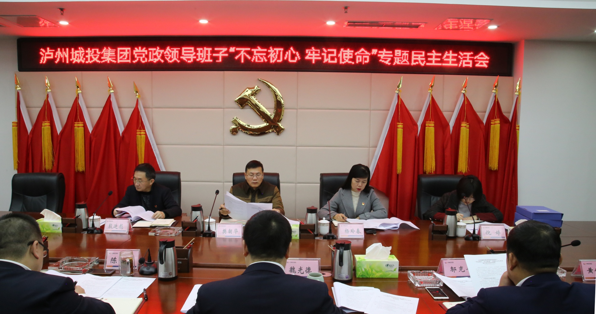 12月10日,瀘州城投集團(tuán)召開黨政領(lǐng)導(dǎo)班子“不忘初心、牢記使命”專題民主生活會。會議由集團(tuán)黨委書記、董事長魏光德主持,市委第一巡回指導(dǎo)組副組長樊朝華,市不動產(chǎn)登記中心信息科干部倪婷,兩江新城黨工委委員、兩江新城管委會副主任楊玲春,集團(tuán)監(jiān)事會主席殷廷彪到會指導(dǎo)并作點評發(fā)言,集團(tuán)黨政領(lǐng)導(dǎo)班子成員參加會議。
