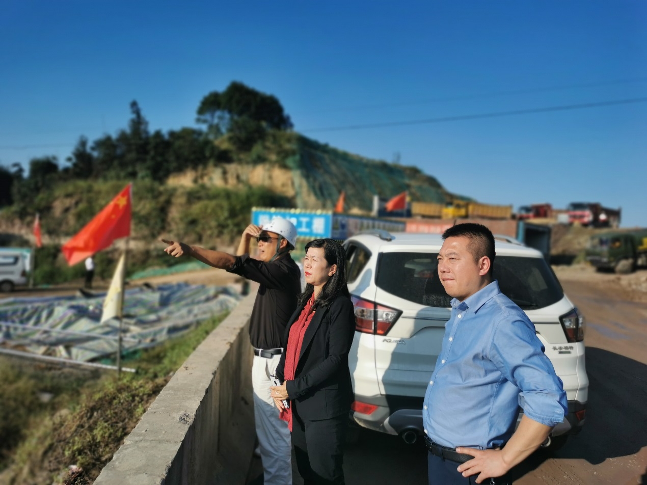 兩江新城管委會副主任楊玲春率隊調研長濕新城片區(qū)骨干道路項目建設