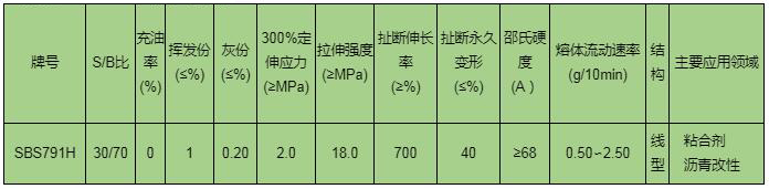 恒泰石化SBS791H質(zhì)量指標(biāo):