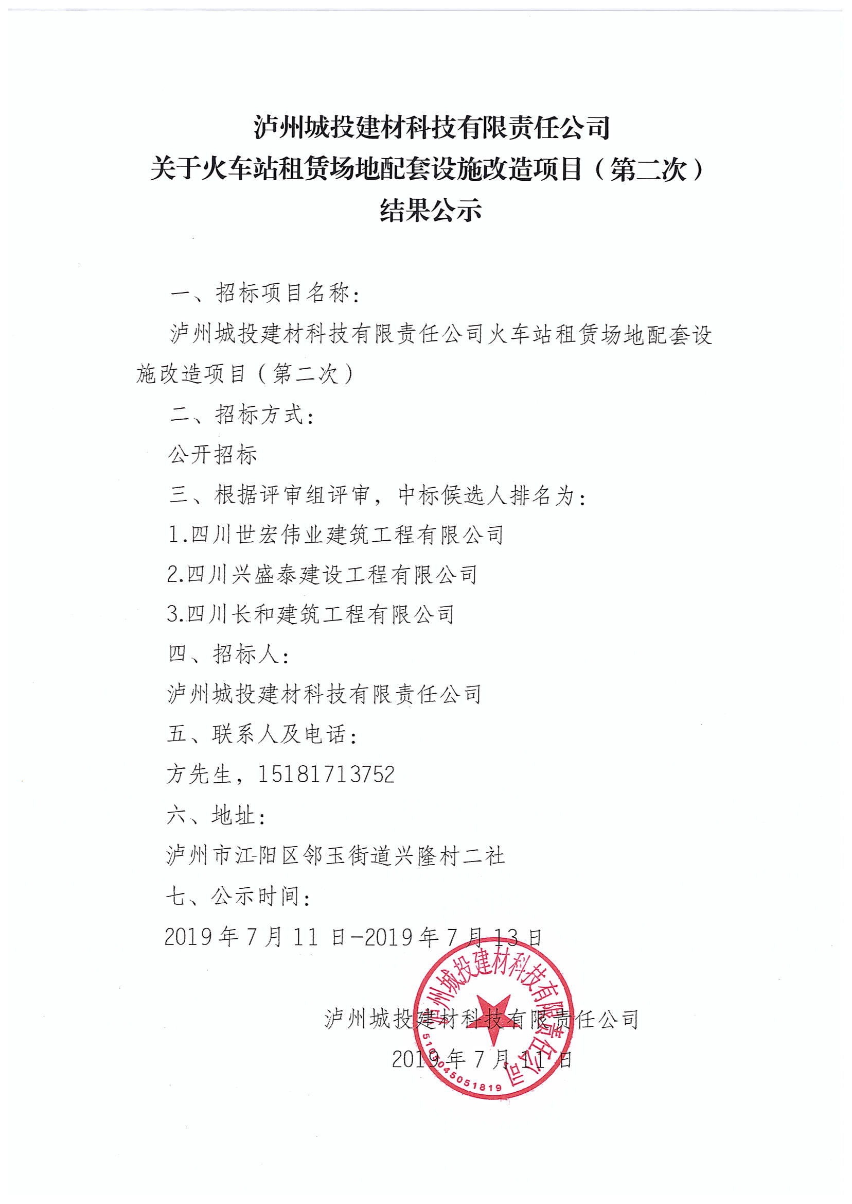 火車(chē)站租賃場(chǎng)地配套設(shè)施改造項(xiàng)目(第二次)結(jié)果公示