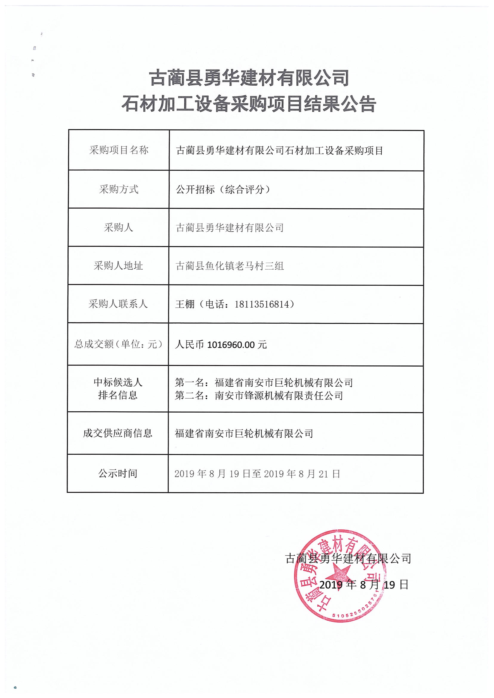 石材加工設(shè)備采購(gòu)項(xiàng)目結(jié)果公告