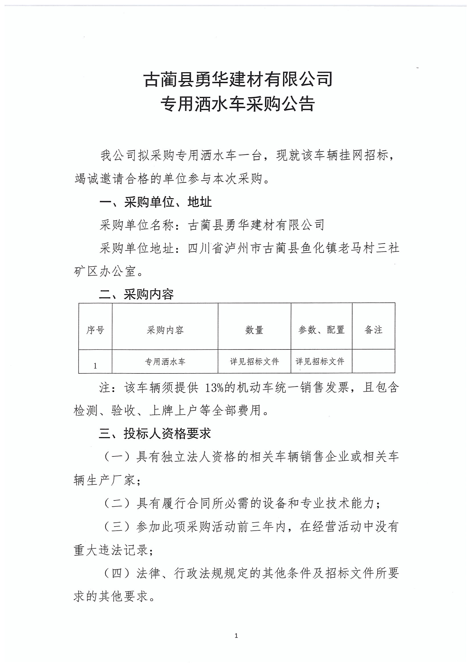 專用灑水車采購公告