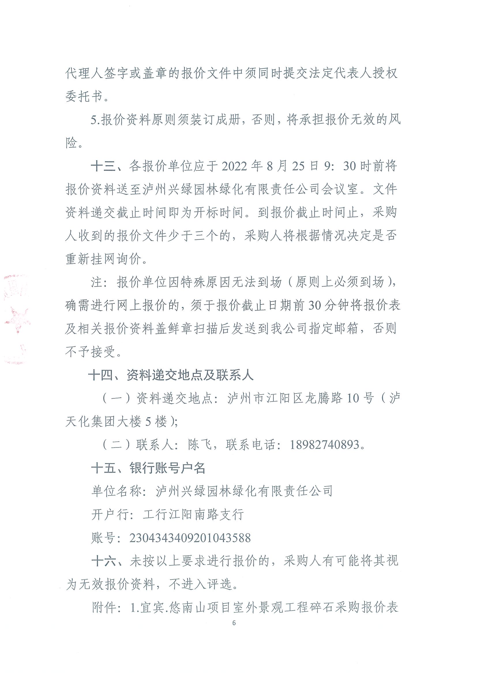 宜賓.悠南山項目室外景觀工程碎石采購(第二次)詢價公告