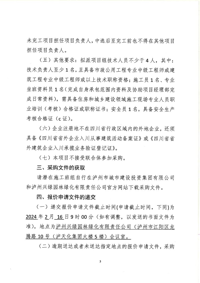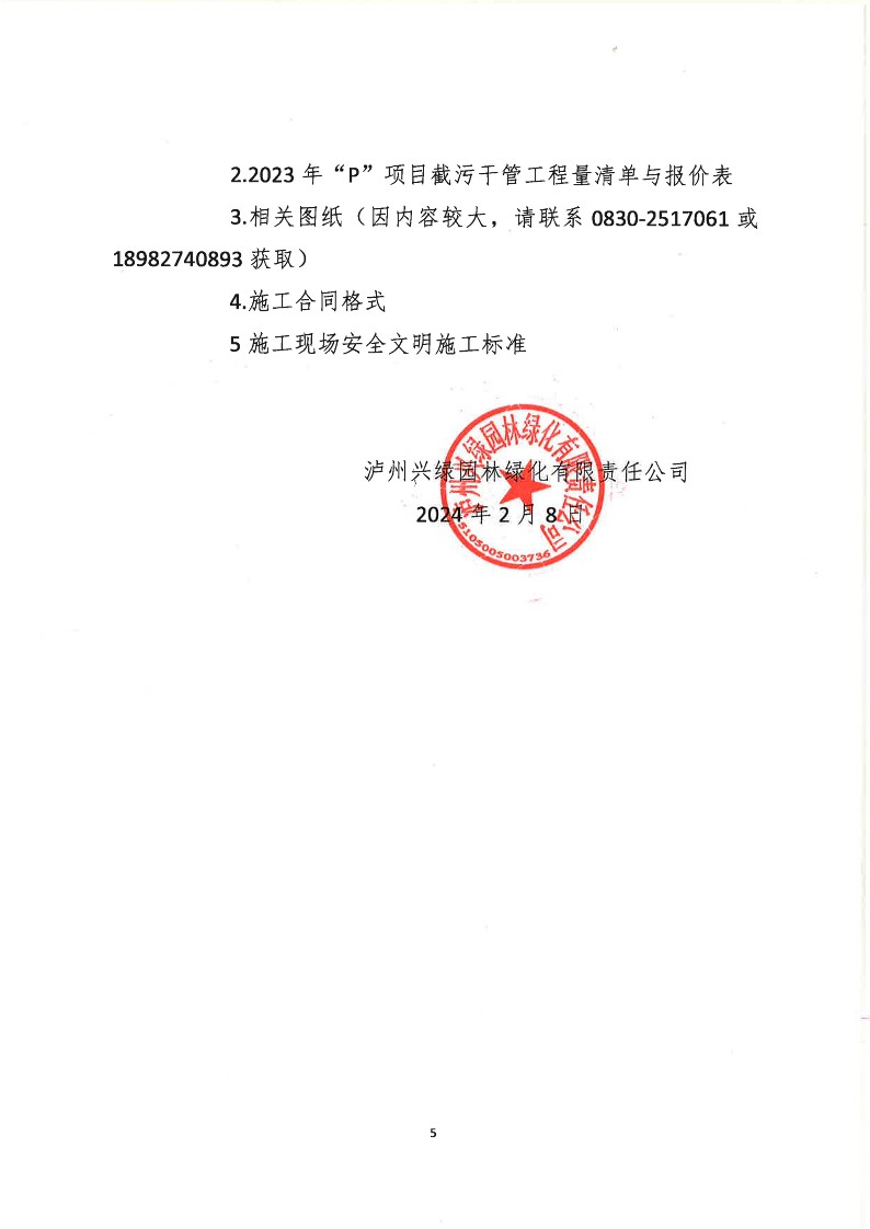 瀘州興綠園林綠化有限責(zé)任公司關(guān)于2023年“P”項(xiàng)目截污干管工程施工班組采購公告